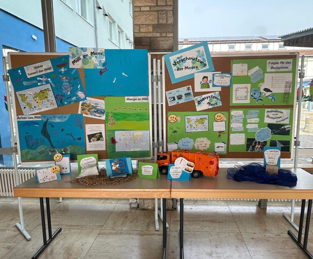 Die Schülerinnen und Schüler gestalteten eine Ausstellung zum Thema „Verschmutzung der Meere“. Zur Vorbereitung sammelten sie Informationen aus verschiedenen Texten und Dokumentationen. Inhaltlich beschäftigten sie sich mit unterschiedlichen Arten von Müll, der in den Meeren vorkommt, sowie mit der Frage, wie der Müll ins Meer gelangt und woher er stammt. Außerdem setzten sie sich intensiv mit dem Ökosystem Meer auseinander und untersuchten die Folgen der Verschmutzung für dieses empfindliche Gleichgewicht.