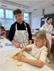 Die älteren Schülerinnen und Schüler übernahmen dabei die Rolle der Helferinnen und Helfer. Mit großer Geduld unterstützten sie die Erstklässler beim Ausstechen, Verzieren und Backen der Plätzchen. Es wurde viel gelacht, probiert und über Lieblingsplätzchen gesprochen. Während die Bleche im Ofen waren, bereiteten einige Gruppen einen leckeren Kinderpunsch zu, der wunderbar nach Zimt und Orangen duftete.